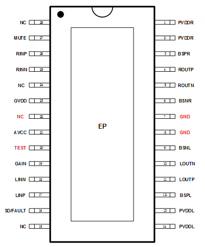 再24V供電PBTL、THD+N=10%條件下能夠持續(xù)輸出140W/2 Ω功率。